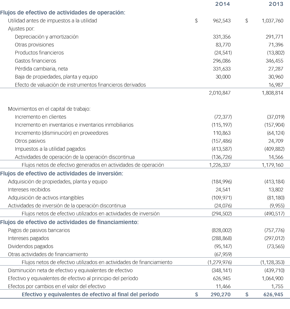 Por los años que terminaron el 31 de diciembre de 2014 y 2013(En miles de pesos)