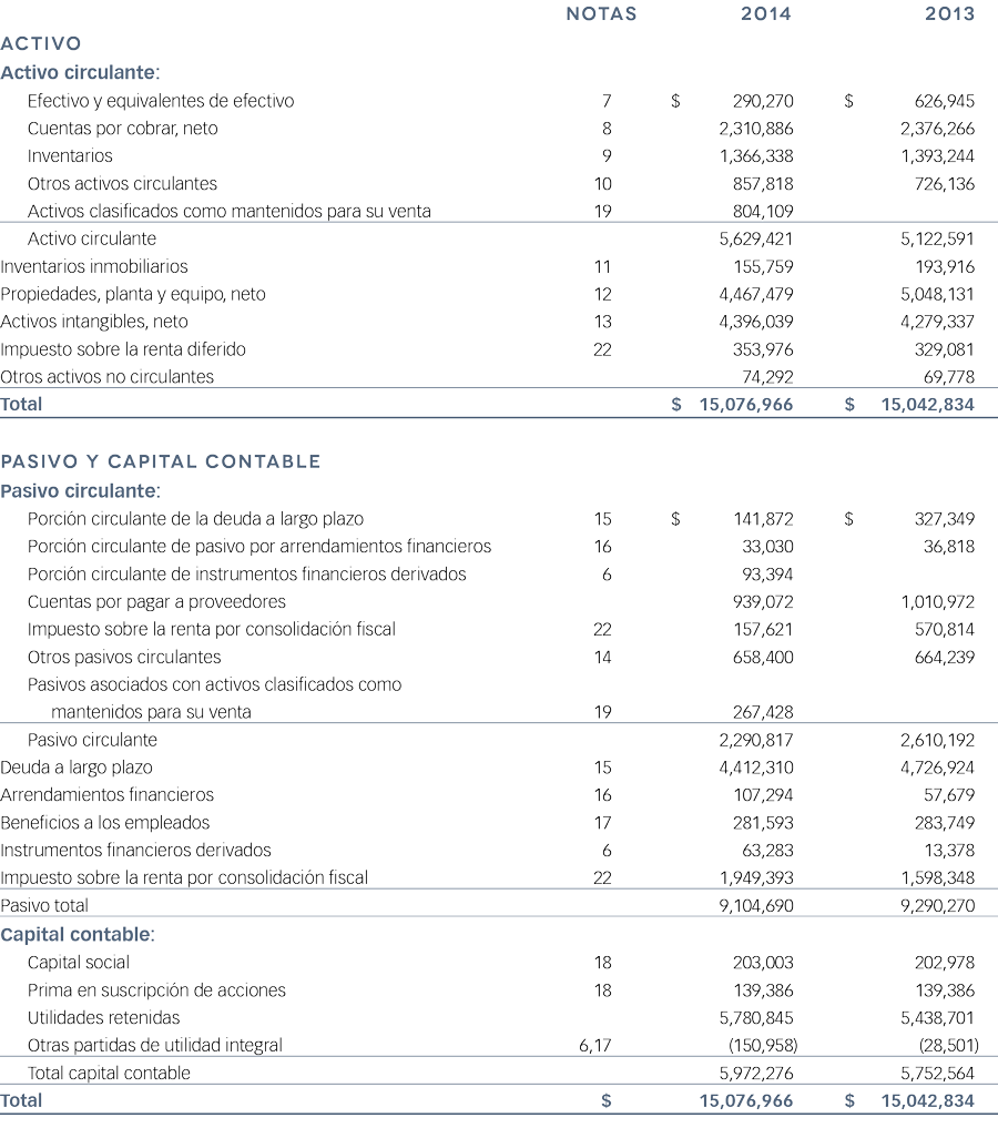 Al 31 de diciembre de 2014 y 2013(En miles de pesos)
