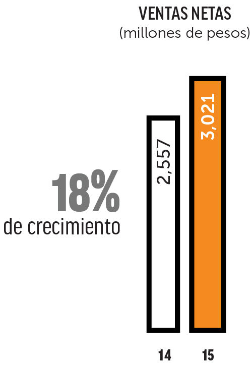 Las ventas del negocio de adhesivos mostraron un crecimiento del 18% durante el 2015 en relación al año anterior. Además de capturar el mayor dinamismo que ofreció la industria de adhesivos en nuestro país, la introducción de productos especializados y el mayor nivel de ventas de exportación, fueron factores que contribuyeron con el crecimiento de los ingresos del negocio.