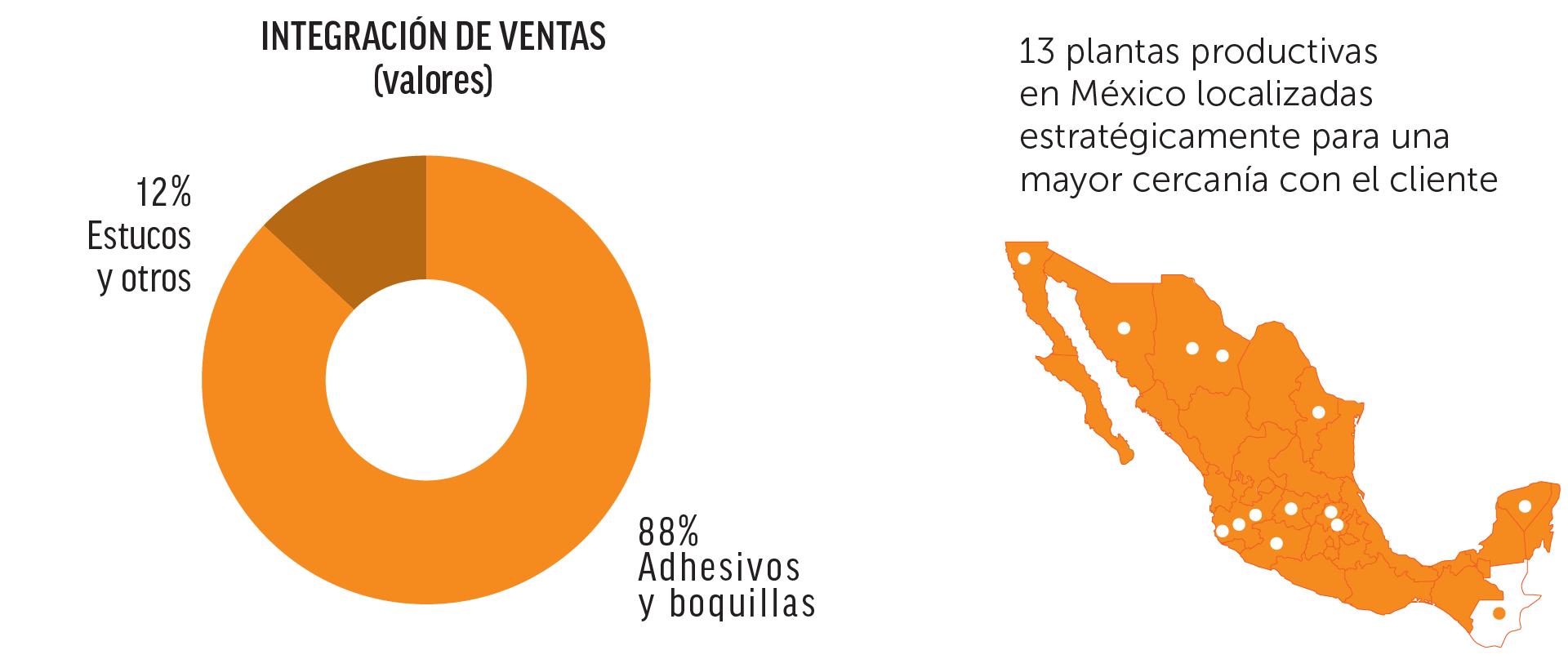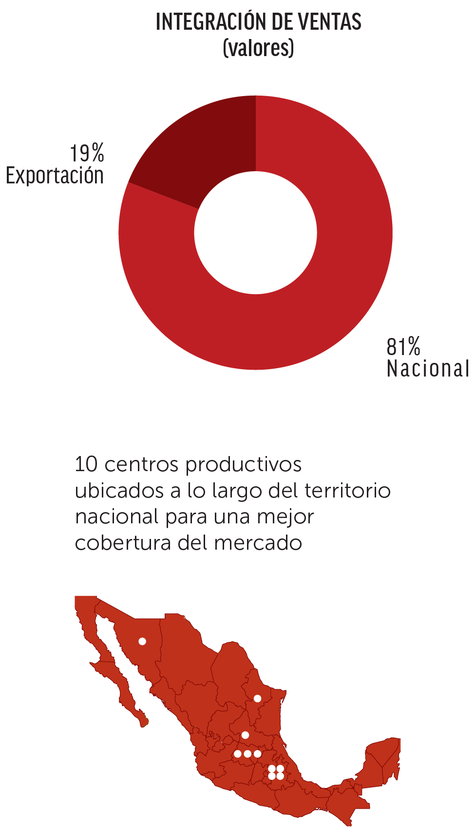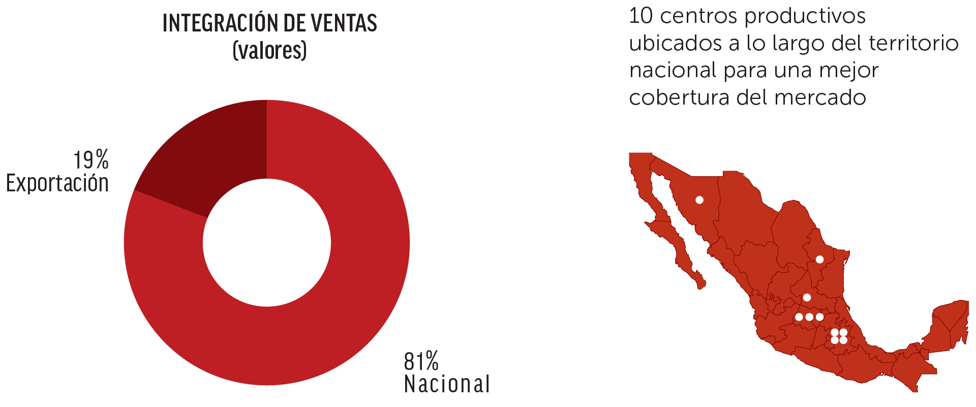Portafolio integral de productos con amplia cobertura geográfica en México.