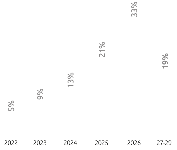 Uno de los logros alcanzados durante el 2021 fue el rendimiento sobresaliente que mostró el precio de la acción de LAMOSA serie única, la cual mostró un crecimiento anual del 202%, comportamiento que reflejó el desempeño extraordinario de la compañía durante el año.